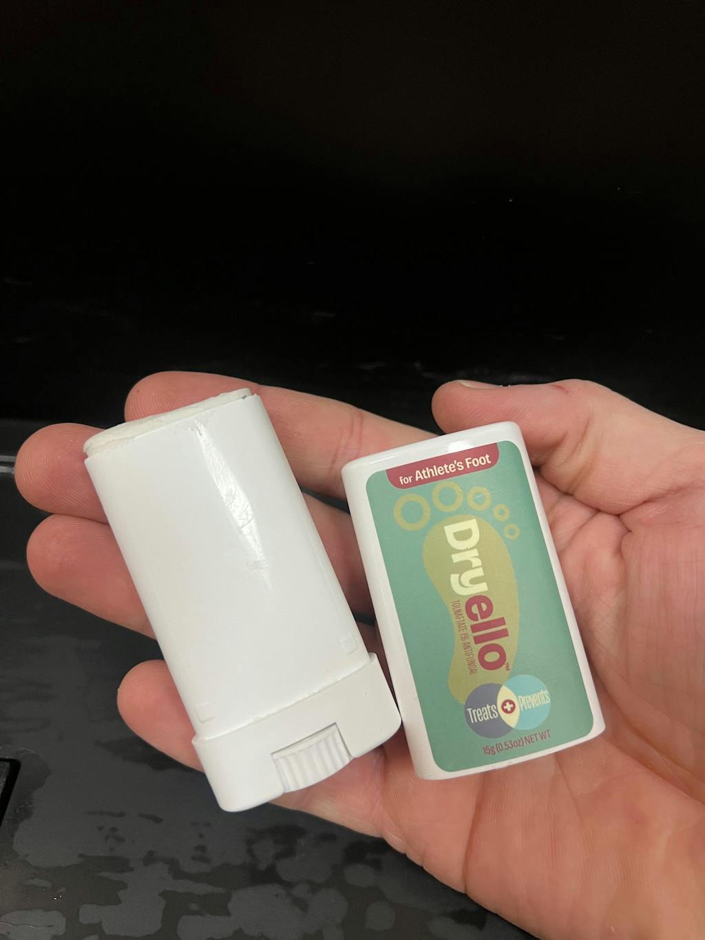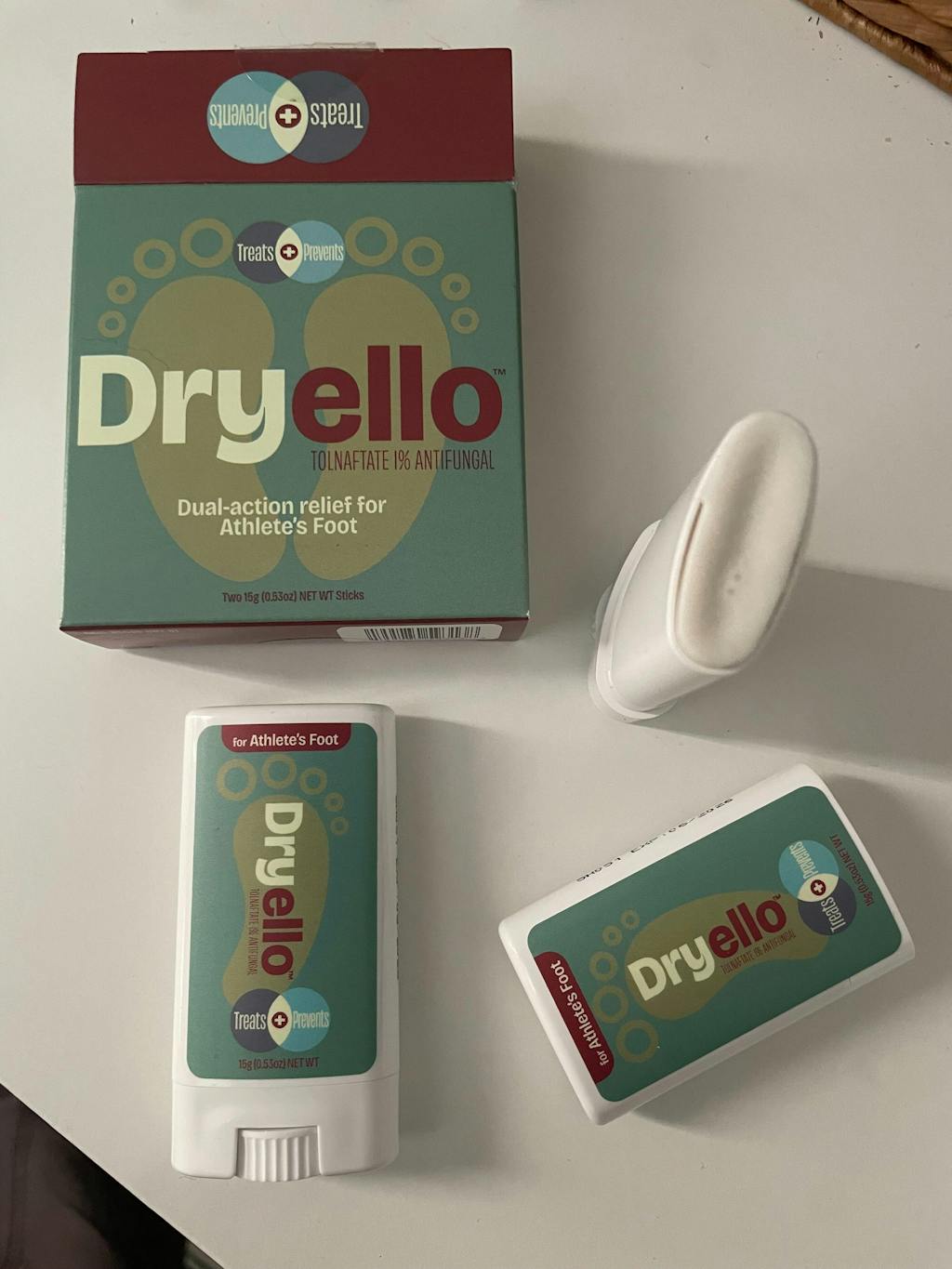 The Dryello Athlete’s Foot Treatment Stick glides on easily, doesn’t drip, and doesn’t leave my hands smelling like medicine. The tolnaftate 1% worked fast; itching and burning were noticeably better within a couple of days, and the flaking cleared up by the end of the treatment.