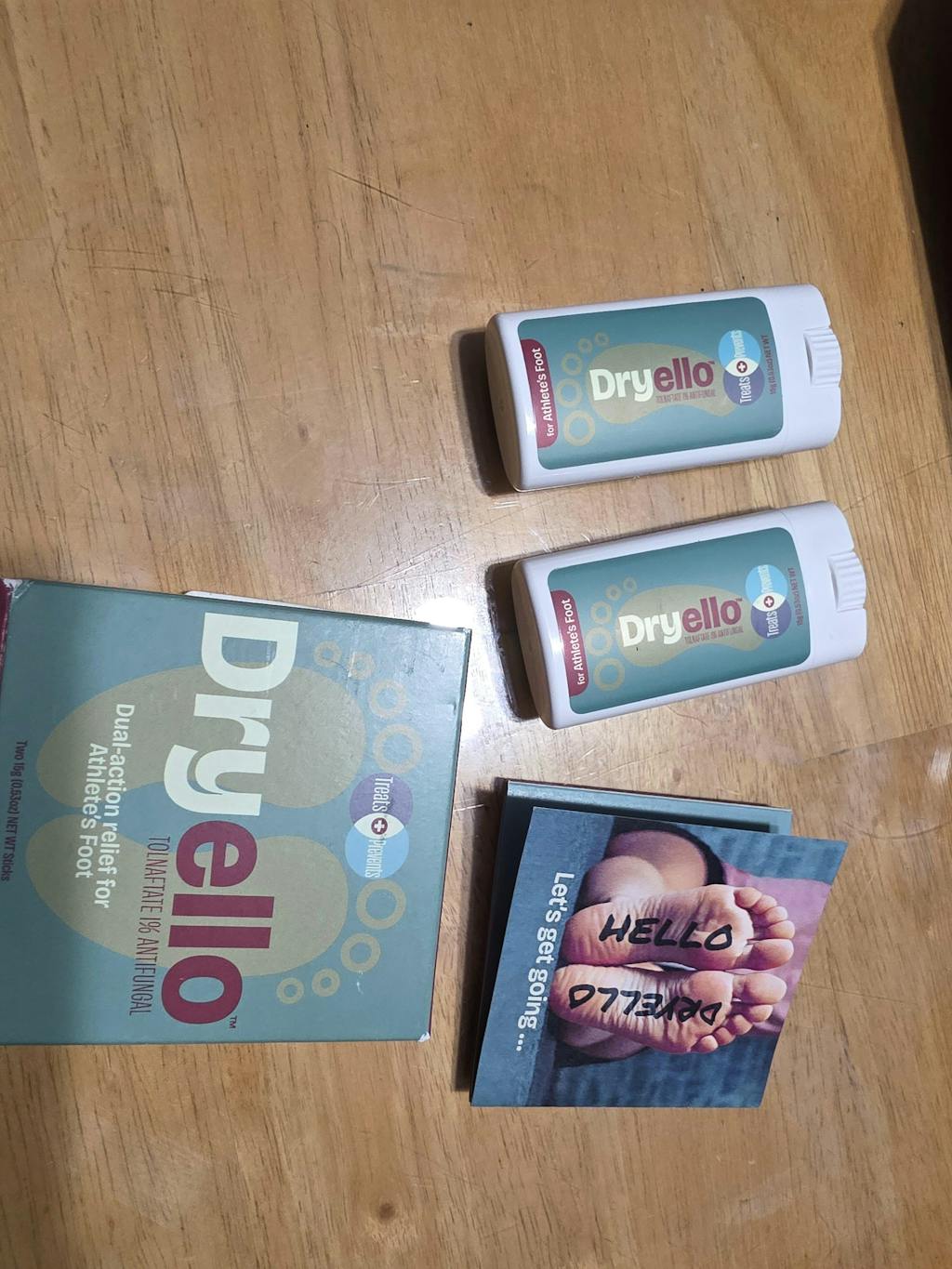 I purchased these because I liked the idea of a bar application that would go on less wet and sticky. I am on my feet all day in the workshop and on our farm. I wanted something to help with the heat and swelling, and itchiness that occurs by the end of a long day. The Dryello stick goes on dryer than a lotion product and I feel like it stays where I want it when pull on my socks. The bars in the box are on the smaller side, but I have been using them for a week now and the bars seem to last a good while.