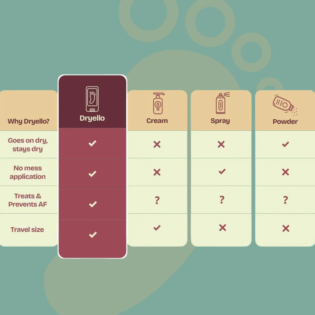 Dryello swipes on like deodorant, so your feet stay dry, happy, and fungus-free.